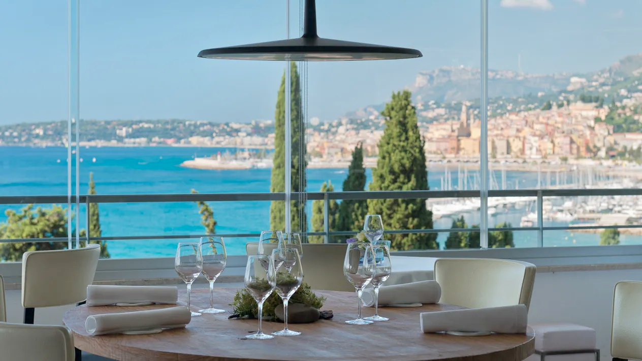 The restaurant’s setting is equally impressive, with a terrace overlooking the famous La Croisette and the Mediterranean. The interior design features a mix of contemporary and classic elements, creating an inviting atmosphere for a special evening.