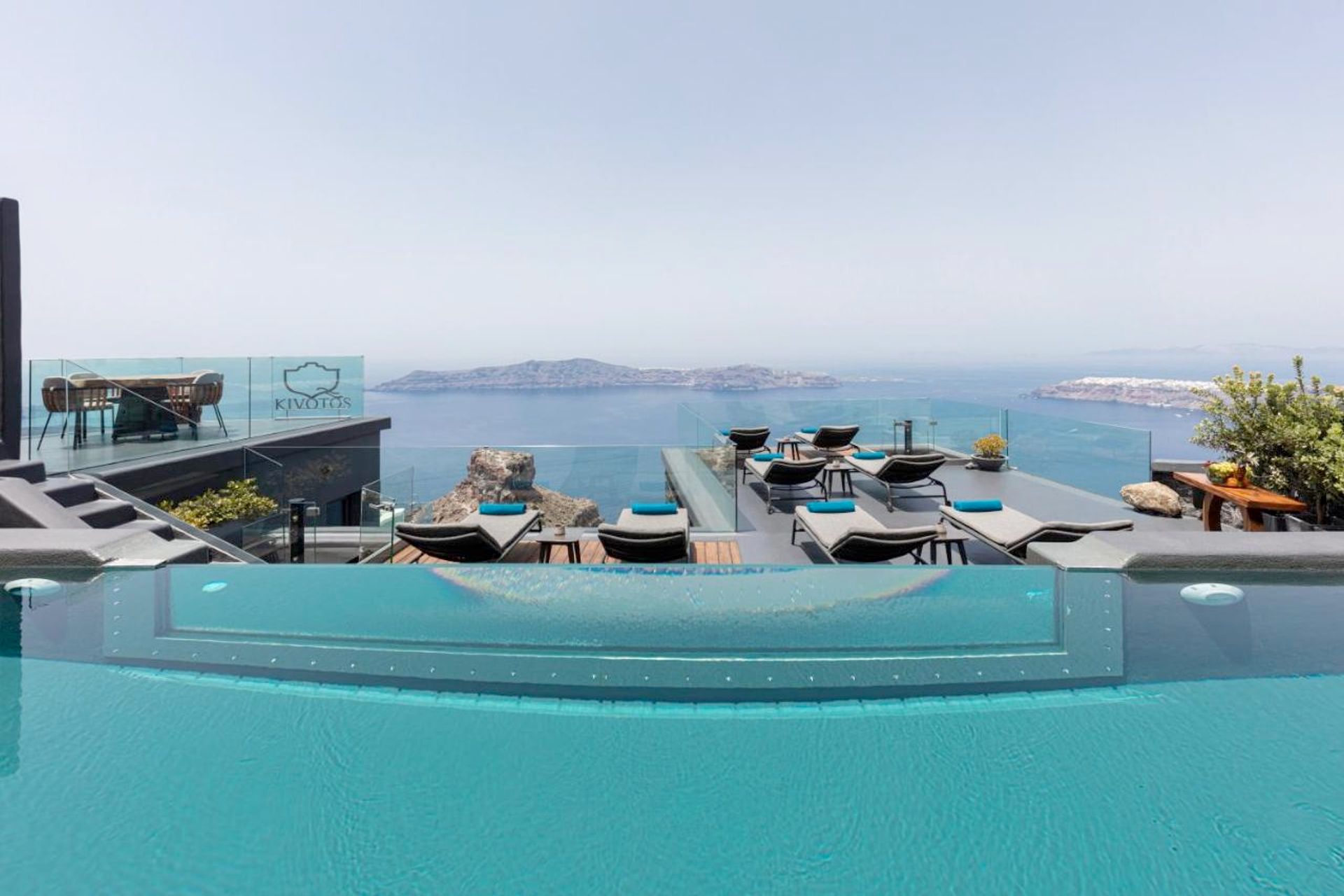 Kivotos Santorini is a unique hotel that combines luxury with artistic flair. The suites are elegantly designed, featuring private terraces and pools. The attention to detail in the decor creates a sophisticated and inviting atmosphere.
